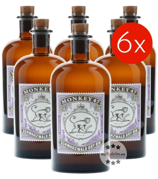 Das exklusive Paket von Monkey 47 besteht aus sechs 0,5 Liter-Flaschen des genialen Monkey 47 Schwarzwald Dry Gin. Der preisgekrönte Gin aus dem Schwarzwald wurde 2010 wiederbelebt und erfreut sich seither großer Begeisterung. Wacholder und Fichte sowie feine Zitrus-Töne, florale Facetten und eine angenehm-würzige Note veredeln Monkey 47 zu einem tollen Geschmackserlebnis.