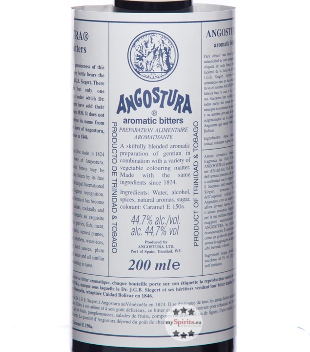 Vertreten in vielen klassischen Cocktails, ist Angostura Aromatic Bitter heute aus dem Barbedarf kaum mehr wegzudenken. Ob Old Fashioned, Manhattan, Horse’s Neck oder Martini – ohne Angostura Bitter fehlt den meisten Cocktails etwas. Bekannt ist nicht nur der Name Angostura, sondern auch das kleine Fläschchen mit dem leicht überstehenden, zu großen Papieretikett. Die Geschichte dahinter ist eine nette Anekdote: Irgendein Mitarbeiter der Firma hatte damals aus Versehen zu große Etiketten bestellt. Jeder dachte, jemand anderes würde das Missgeschick sicher ausbügeln, doch nichts geschah und so wurden die übergroßen Etiketten zum sympathischen Markenzeichen von Angosturabitter.