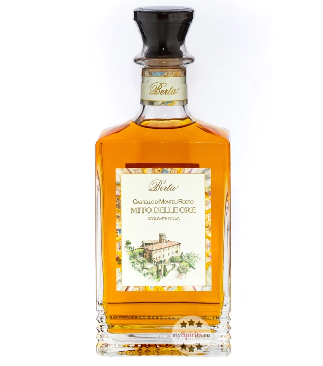 Das Schicksal vertraute der Familie Berta das Schloss von Monteu Roero an. Die uralten Gemäuer boten einst Kaiser Friedrich Barbarossa Zuflucht und sind seit der Renaissance nahezu vollständig erhalten geblieben. Ein mystischer Ort, wie geschaffen für einen Geist. Der Weingeist mit dem Namen Mito delle Ore ist eines von drei Destillaten, die Berta dem Castello di Monteu Roero gewidmet hat.
