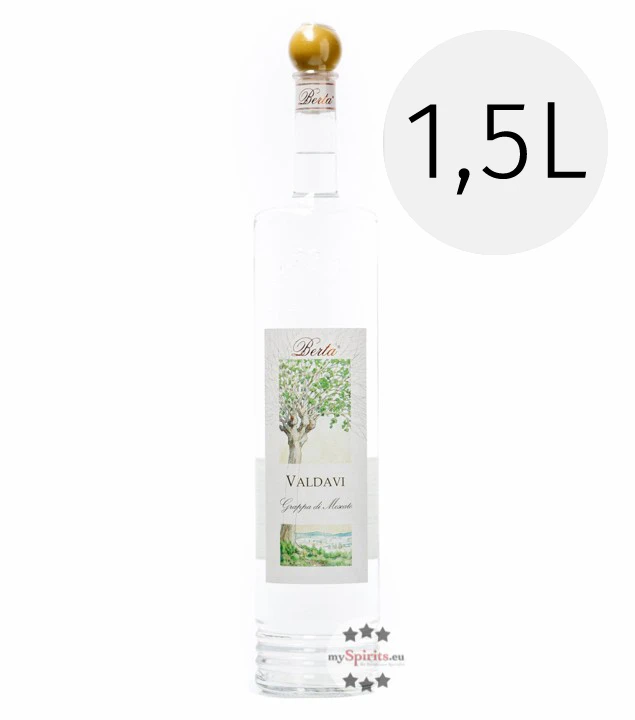 Genießen Sie Berta Valdavi Grappa di Moscato in der Magnum-Flasche