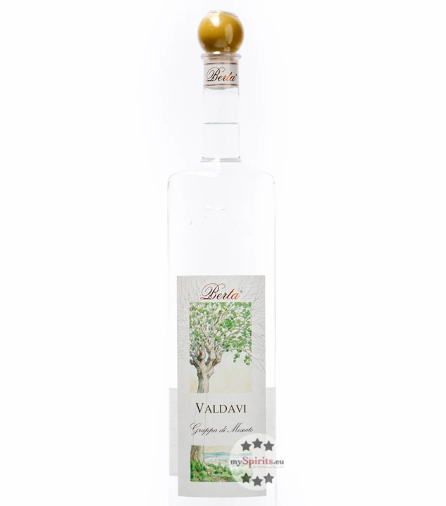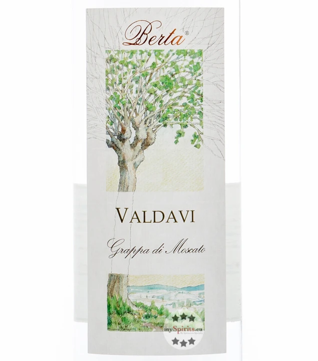 Die Muskateller-Rebe wurde schon in der Antike kultiviert, und auch in den Anbaugebieten im Piemont hat der, italienisch Moscato genannte, Weißwein eine lange Tradition. Fruchtig und frisch schmeckt der Moscato, eine feinwürzige Note macht den besonderen Charakter aus. Einem Hauch von Muskat verdankt der edle Weißwein seinen Namen. Aus pressfrisch angeliefertem Trester des Moscato entsteht bei Berta der sortenreine, klare Grappa Valdavi.