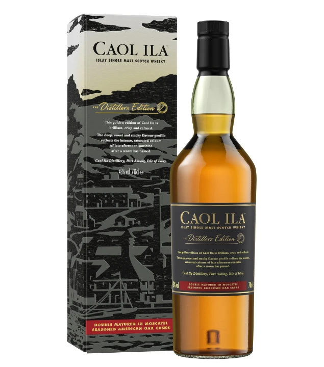 Der rauchige Charakter des Caol Ila harmoniert wunderbar mit der würzigen Säure aus dem Moscatel Cask. Der Weißwein bringt eine zusätzliche Ebene in den Geschmack, ohne die Tugenden des Caol Ila zu verdecken. Reich und komplex, dabei angenehm und zugänglich ist die limitierte Distillers Edition des Islay Single Malt Whisky.