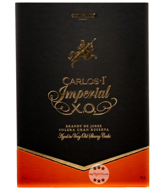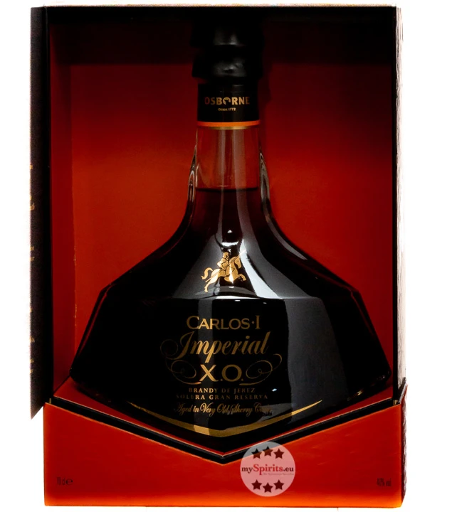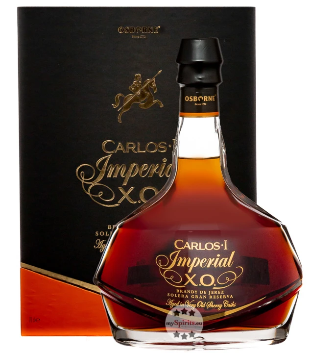 Carlos I gehört zum ältesten und renommiertesten Wein- und Spirituosenhersteller Spaniens, der 1772 gegründeten Osborne Unternehmensgruppe. Die langjährige Erfahrung, Tradition und Handwerkskunst spiegelt sich eindrucksvoll in Carlos I Imperial XO wider. Nach der sorgfältigen Auswahl der Trauben erfolgt die Destillation in Kupfer- und Alquitara-Brennblasen auf diskontinuierliche Weise, was das Destillat besonders rein und hochwertig macht. Anschließend darf Imperial XO sein raffiniertes Aromenspiel während der Solera-Reifung in sehr alten Ex-Sherry Fässern aus amerikanischer Eiche zur Perfektion entwickeln. Dabei werden bis zu 20 Jahre alte Weindestillate vermählt. In den Fässern lagerten zuvor exquisite, für lange Zeit gereifte Sherry-Weine aus der Region, die ihre Geschmacksnoten durch das Holz nun an den Brandy weitergeben.