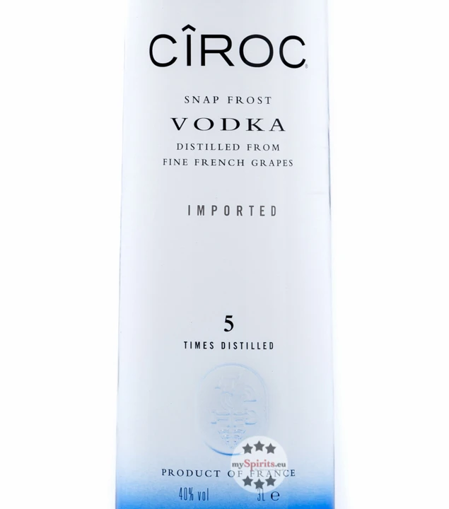 „Snap Frost“ heißt der klare, unverfälschte Wodka von Cîroc, was sich auf den Zustand der Weintrauben bei der Ernte bezieht. Diese werden nach dem ersten Frost geerntet, wenn sie sozusagen schockgefroren sind. Die Herstellung dieses außergewöhnlichen Wodkas ähnelt demnach zunächst also der von Eiswein. Doch 5 Destillationen später ist davon nur noch ein Hauch wahrzunehmen. Es handelt sich um einen klaren und reinen Wodka, der mit leichten Fruchtnoten auf sich aufmerksam macht.