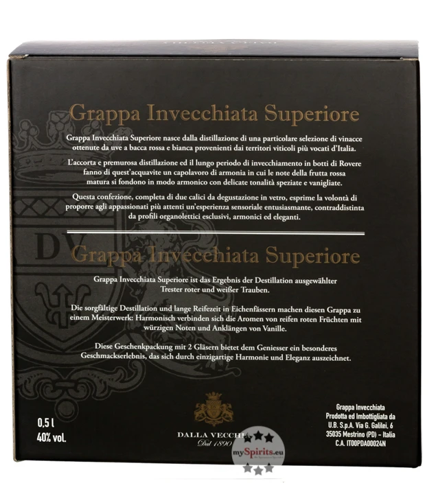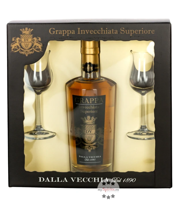 Kaufen Sie jetzt seidenweichen Dalla Vecchia Grappa Invecchiata Superiore Set bei mySpirits.eu!