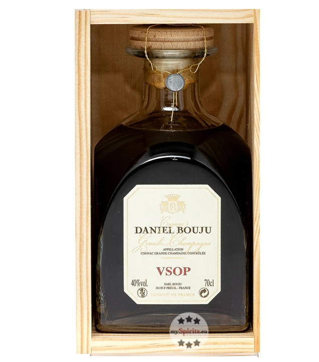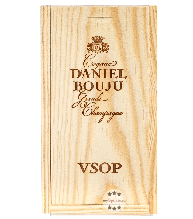Bestellen Sie Daniel Bouju VSOP hier bei mySpirits in der exklusiven Dekanter-Flasche und hochwertigen Kiste aus Holz – herausragend als Geschenk!
