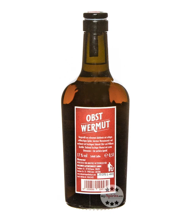 Normaler Wermut (oder Vermouth) basiert auf Wein, der aus Weintrauben hergestellt wird. Der Obst Wermut von Dolomiti Alpenfeinkost setzt dagegen voll und ganz auf die geschmacklichen Vorzüge heimischer Früchte. So wird die Basis dieser alpenländischen Spezialität mit zwei verschiedenen Apfelwein-Sorten angesetzt, darunter insbesondere ein Most aus erlesenen Weirouge-Äpfeln, die besonders rot sind und mit ihrer feinen Herbe ideal zu Wermut passen. Verfeinert und auf den Alkoholgehalt von 17 % Vol. gehoben wird Dolomiti Obst Wermut durch hauseigene Destillate aus Äpfeln und Williamsbirnen.