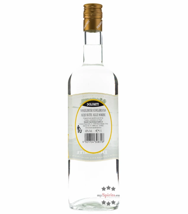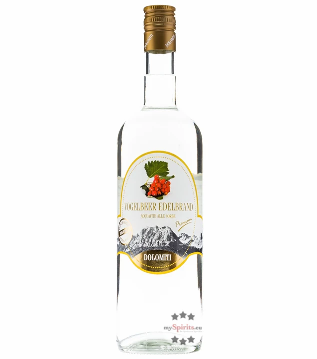 Für den Dolomiti Vogelbeer-Edelbrand werden ausgesuchte Vogelbeeren (Beeren der Ebereschen) mit moderner Technik verarbeitet. Der zarte Marzipangeschmack überzeugt Kenner & Neuentdecker der besonderen Schnaps-Spezialität.