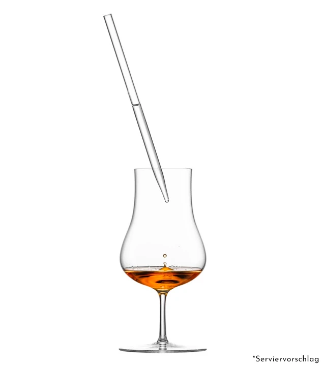 Das Whiskyglas in Tulpenform ist das ideale Behältnis für qualitätsvolle Destillate und schenkt der Aromenvielfalt der Destillate den nötigen Raum alle Geschmacksfacetten zu entfalten. Um den Trinkgenuss zu vervollkommnen, kann im zweiten Glas Wasser gereicht werden, aus dem sich mit der hochwertigen Glaspipette die gewünschte Tropfenmenge zum Verdünnen entnehmen und ohne Probleme dosieren lässt.