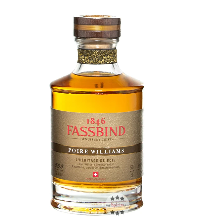 Fassbind Poire Williams L’Héritage de Bois ist ein vollmundiger und fruchtiger Obstbrand mit intensiven Holznoten. Eine vollendete, abgerundete Komposition aus Aromen, wie sie nur durch das traditionelle Destillationsverfahren der Edelbrennerei Fassbind und einer Holzfasslagerung zustande kommen kann. Fassbind Williams L’Héritage de Bois überzeugt mit fruchtigem Duft, kraftvollen und von Holz durchzogenen Noten am Gaumen und einem langen, spannenden Abgang. Gibt man ein paar Tropfen Wasser zum in Fassstärke abgefüllten Obstbrand, entfalten sich besonders warme, weiche und süßer werdende Facetten.