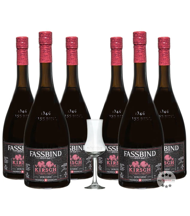 Die Vieille Cerise von Fassbind wird aus erlesenen Kirschen der besten Anbaugebiete der Schweiz hergestellt. Im Anschluss an die Destillation reift die Vieille Cerise im Eichenholzfass und erhält daraufhin eine hausgemachte Dosage, die ihr die feinfruchtige Süße verleiht. Diese unterstützt den milden und geschmeidigen Charakter und ergänzt die Mandel- und Holznoten der Alten Kirsche.