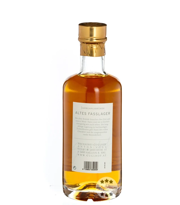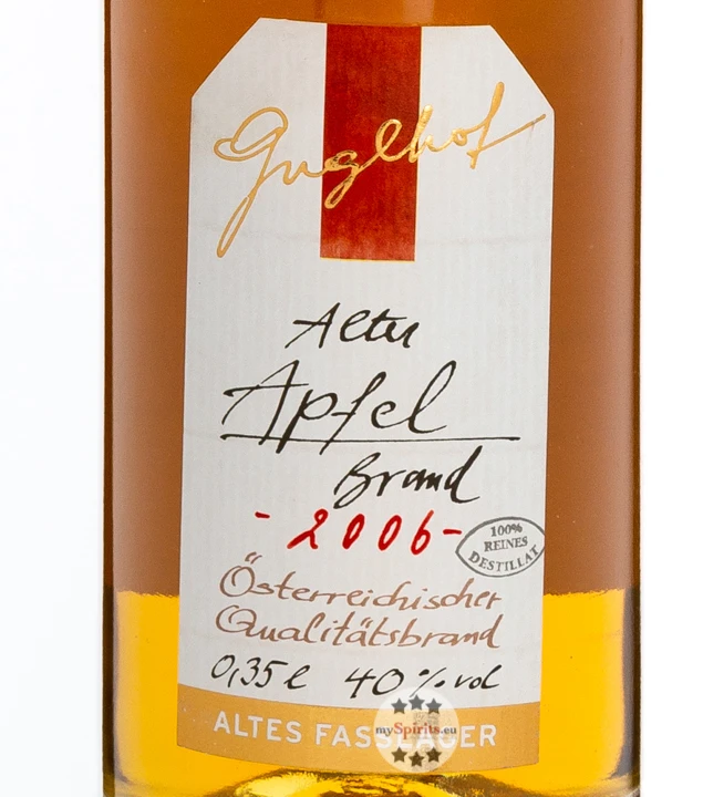 Guglhof Alter Apfelbrand ist aus besten Äpfeln hergestellt und 10 Jahre im Eichenfass gereift. Hier erhält dieser Qualitäts-Obstbrand seine goldene Farbe. Das Bouquet dieses Destillats zeigt einen dezenten Holzton. Am Gaumen präsentieren sich wunderbare Aromen von Äpfeln, Vanille, Orange und Nougat. Der Körper ist gut strukturiert und fest. Der Abgang von Guglhof alter Apfelbrand ist wunderbar lang und aromatisch. Hinweis zu den Abbildungen: Sie erhalten die jeweils aktuelle Abfüllung, der Jahrgang auf der Abbildung ist daher symbolisch und entspricht nicht dem tatsächlichen Jahrgang.