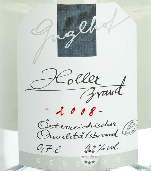Guglhof Hollerbrand Reserve ist ein aromareicher Brand aus schwarzem Holunder. Er betört durch seinen typischen Fruchtcharakter (dunkelbeerig, tiefgründig, dicht rauchig, kräuterwürzig) in der Nase. Am Gaumen typische Noten nach schwarzem Holunder.