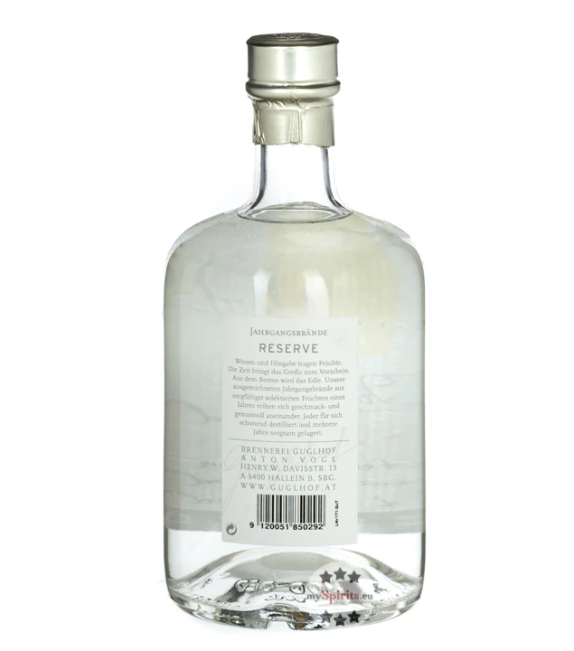 Für dieses feine Quittendestillat werden speziell ausgesuchte vollreife Quitten verwendet. Besonders fein und rund wird dadurch der daraus gewonnene Quittenbrand. Die Quitte hat es nicht so mit dem Geruch man muss die Frucht ganz nah an die Nase halten, um das Apfelig-Orangene einzuatmen. Der Quittenbrand wirkt zart, verhalten, aber kenntlich und reintönig. Die Brände von Guglhof riechen exakt so, wie sie später schmecken.
