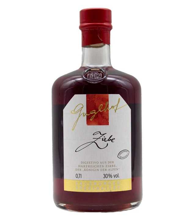 Die Zirbe oder auch Zirbelkiefer wird „Die Königin der Alpen“ genannt. Dieser Nadelbaum ist im Alpenraum beheimatet und wächst vor allem in Höhenlagen zwischen 1.500 und 2.000 Metern über dem Meeresspiegel. Der Zirbenlikör wird aus den roten Zirbenzapfen hergestellt, die äußerst mühselig geerntet werden und ist ein sehr traditionsreicher, und für Österreich typischer Likör. Die Brennerei Guglhof verwendet für den Zirbe Likör ein altes Hausrezept. Der charakteristische harzige Duft der Zirbe wird in der Nase durch feine Waldhonignoten ergänzt. Am Gaumen ist Guglhof Zirbe Likör angenehm süß und weist eine schöne Balance auf.