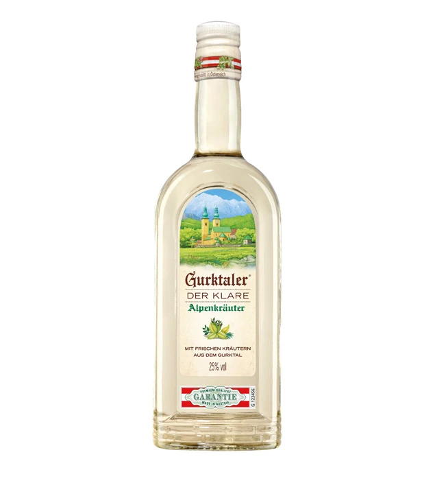 Der klare Alpenkräuter von Gurktaler ist an den bereits bekannten Alpenkräuterlikör von Gurktaler angelehnt. Anders als der „Klassiker“ wird dieser aber zusätzlich mit Zitronenmelisse und Pfefferminze verfeinert. Damit erhält der klare Kräuterschnaps das besondere Etwas und ist trotzdem noch angenehm mild im Geschmack. Die Kräuter stammen aus Österreich, wo auch die Brennerei Gurktaler ihren Sitz hat.