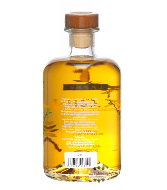 Die Zusammenarbeit des Sterne-Kochs Johann Lafer und der bekannten Feinbrennerei Lantenhammer kreierte K.GIN – ein würziger Wacholder Dry Gin mit einem einzigartigen Kräuter-Geschmack. Zum leckeren Geschmack des Gins tragen 12 Botanicals bei. Darunter Orangen- und Zitronenthymian, Süßkraut und Wacholder. Der exotische Charakter von K.Gin wird durch die Nutzung extravaganter Gewürze wie Urwaldpfeffer aus Vietnam oder aztekischem Süßkraut geschaffen. Trotz des Facettenreichtums an Aromen und Geschmäckern, präsentiert sich K.Gin harmonisch und ausgefeilt auf der Zunge.