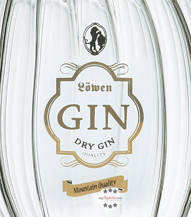- Aufdruck Löwen Gin – Dry Gin Quality in Schwarz und Gold