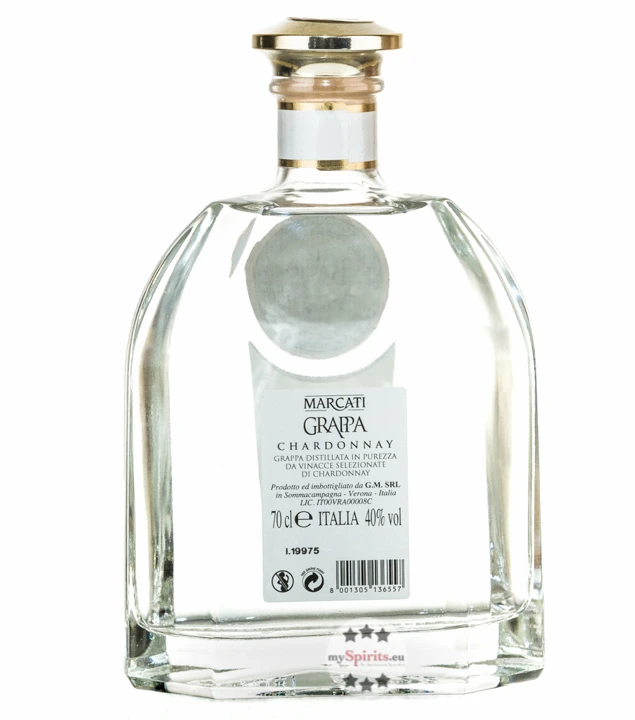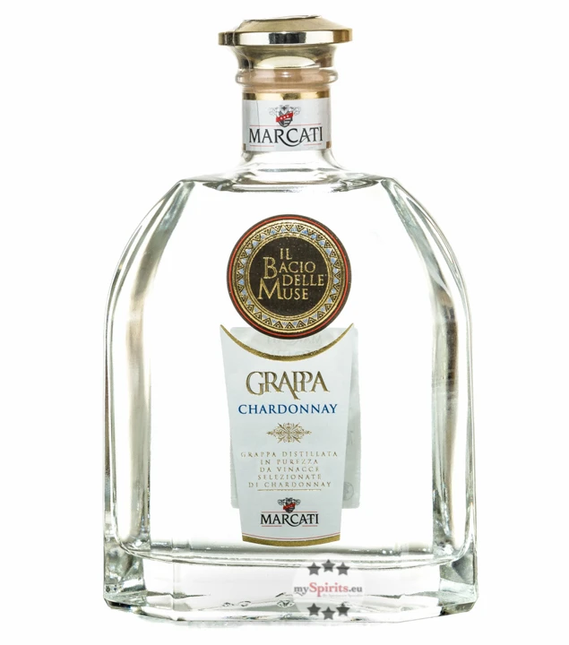 Der Marcati Grappa Chardonnay aus der Linie „Il Bacio delle Muse“ ist ein Grappa von glasklarer Farbe, der aus dem Trester des Chardonnays gebrannt wird. Chardonnay ist eine der hochwertigsten und verbreitetsten weißen Rebsorten der Welt. Der Grappa Chardonnay von Marcati ist ein typischer Vertreter seiner Art und besonders ausdrucksstark und klar im Geschmack.