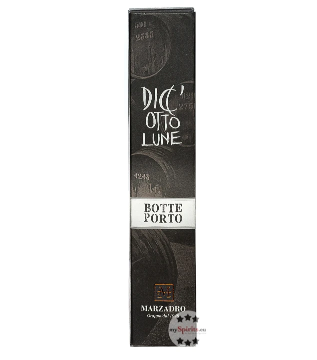 Für Marzadro Le Diciotto Lune Riserva Botte Porto wird der bekannte 18 Lune zusätzliche 18 Monate in hochwertigen Portweinfässern gelagert, wodurch er einen einzigartig fruchtigen Duft und Geschmack erhält. Die führende Holznote des Grappas wird durch die zusätzliche Lagerung in den Portfässern erneut bestätigt und geprägt. In der kleineren 0,2 Liter Flasche – die größere Flasche gibt es mit einer Füllmenge von 700 ml – können Sie Grappa Riserva Botte Porto verkosten und probieren. Auch als Geschenk eignet sich der aus den Rebsorten Marzemino, Teroldego, Merlot, Muskatteller und Chardonnay hergestellte Grappa sehr gut.
