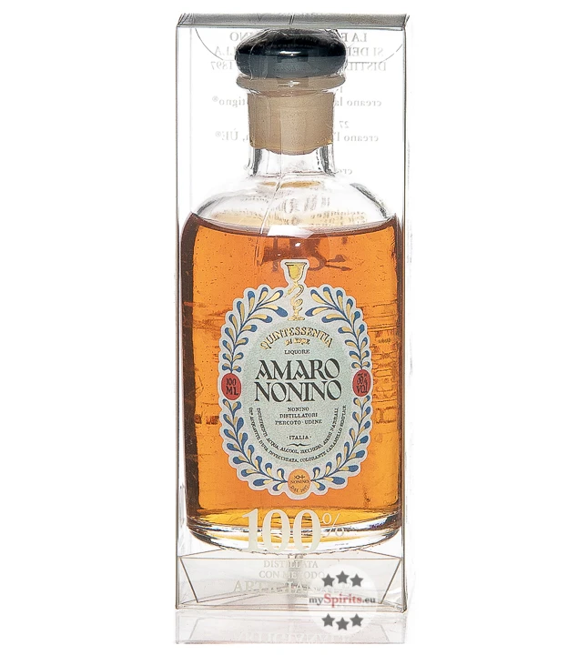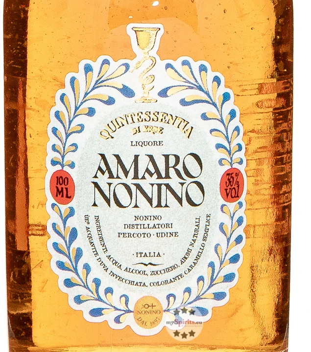 Kaufen Sie hier den Kräuterlikör Amaro Nonino im kleinen 0,1 Liter-Fläschchen zum Probieren oder als Geschenk. Die edle kleine Flasche ist eine Miniatur der normalgroßen Amaro-Flaschen von Nonino, der nahmhaften Grappa-Destillerie aus dem Friaul. Der Inhalt ist derselbe: wunderbar ausgewogene Mischung aus Bergkräuter-Essenzen im fassgelagerten Nonino Traubenbrand ÙE.
