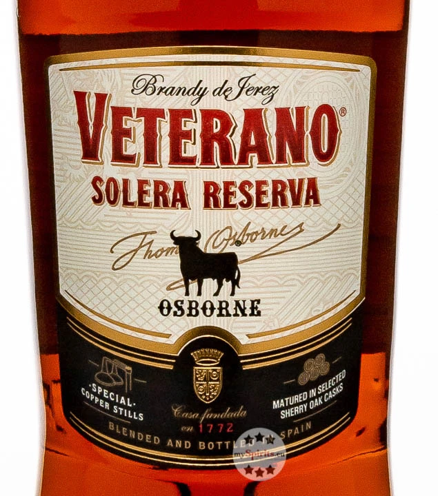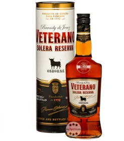 Das Unternehmen Osborne wurde bereits 1772 von einem englischen Geschäftsmann in El Puerto de Santa María in Andalusien gegründet und ist bis heute in Familienhand. Unverkennbares Markenzeichen ist der Osborne-Stier, der seit 1956 die Brandy-Flaschen ziert und einen Teil der südspanischen Kultur und Identität repräsentiert. Für Veterano Solera werden nur die besten sonnenverwöhnten Weintrauben destilliert, was sich eindrucksvoll im Geschmack widerspiegelt. Eine Flasche des feinen Tropfens sollte jeder Brandy-Liebhaber in seiner Hausbar haben.