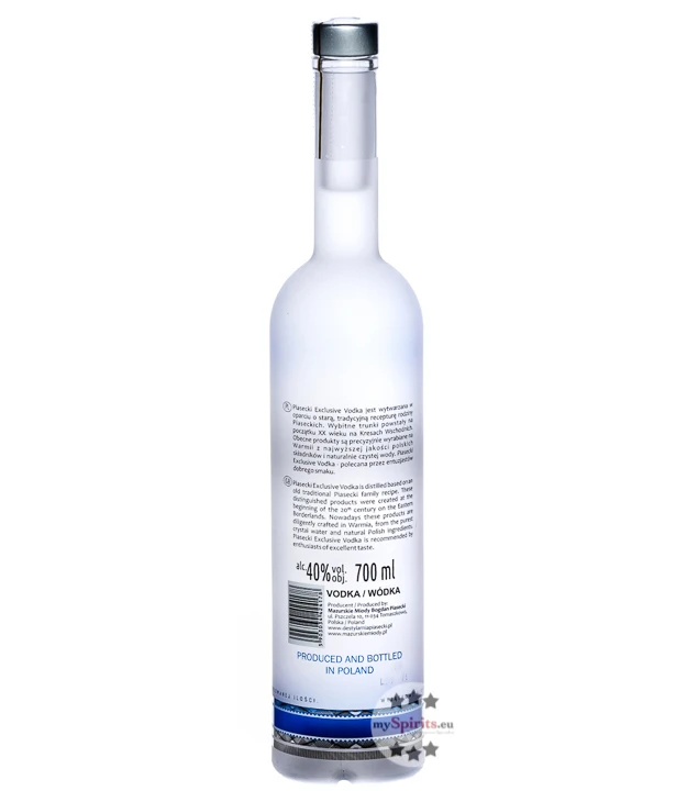 Reinstes Quellwasser und hochwertiger Getreidealkohol bilden die Basis für Piasecki Vodka. Nach der sechsfachen Destillation erfolgt eine sorgfältige Filterung durch Holzkohle, was dem Vodka seinen klaren und reinen Charakter verleiht. Der in den Masuren in Polen ansässige Hersteller Mazurskie Miody ist eigentlich für die Produktion von Honig nach alten Methoden bekannt, widmet sich seit einigen Jahren aber auch der Herstellung hervorragender Wodkas. Piasecki Vodka ist kein Massenprodukt, sondern vielmehr ein Geheimtipp für Wodka-Freunde, hergestellt mit viel Liebe zum Detail und Know-how.