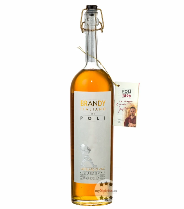 Von GioBatta Poli (Poli bedeutet übrigens so viel wie die Nachkommen Paolos) 1898 gegründet, bereitet die Familie Poli bis heute exzellente Spirituosen aus Wein und Trestern zu. Der Familienbetrieb arbeitet mit voller Hingabe und viel Leidenschaft für Rohstoff, Verarbeitung und Produkt, so auch bei Poli Brandy Italiano. Der Weinbrandwird aus Soave-Wein aus Trebbiano-Trauben aus Venetien gebrannt, der Gegend, in der auch die Destillerie Poli beheimatet ist. Brandy Italiano di Poli wird handwerklich im diskontinuierlichen Destillierverfahren hergestellt, drei Jahre im Eichenfass gereift und schmeckt sonnig und warm mit Duftnoten von Kaffee, Muskat und Vanille.