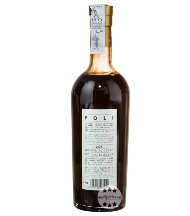 Der zart cremige, schokoladene Kakaolikör der Destillerie Poli wird traditionsgemäß mit Grappa als Basiszutat hergestellt – wie sollte es in einer Grappa-Region wie dem Veneto auch anders sein. Herrlich weich und langanhaltend kommt Poli Kreme 17 Ciok daher und verführt die Sinne mit einer Rezeptur aus echtem Kakao, Grappa, Frischmilch und Zucker. Der Kakaolikör wird nach einem traditionellen Rezept aus Bassano del Grappa zubereitet und schmeckt am besten gut gekühlt bei 10-15°C.
