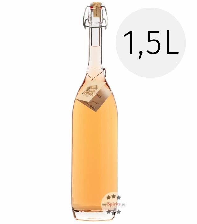 Der intensiv-beerige, mild-weiche Himbeerschnaps Alte Waldhimbeere der Fein-Brennerei Prinz wird nach der doppelten Destillation im Feinbrandverfahren zunächst im Steingut und anschließend im Holzfass gelagert. Zuletzt wird er mit natürlichen Fruchtauszügen veredelt und erhält so einen äußerst intensiven, fruchtig nach Himbeere schmeckenden und dennoch milden Schnaps-Charakter. Die 1,5 Liter Großflasche eignet sich ideal zum Verschenken für Freunde und Familie – ist aber auch auf Festen zu Hause ein Hingucker.