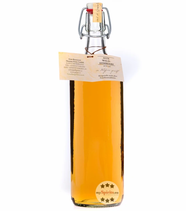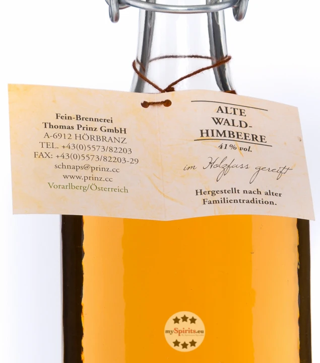 Seit 1886 holt Prinz im Familienbetrieb in dritter Generation das Beste aus den vorwiegend regionalen Früchten vom Bodensee heraus und auch das Design der Produkte ist stets von Qualität geprägt: So wird Prinz Alte Waldhimbeere in den typischen schlichten Flaschen aus hochwertigem Glas mit Bügelverschluss und Siegelband der österreichischen Brennerei verkauft. Empfohlen wird, die Alte Waldhimbeere von Prinz pur und ungekühlt bei etwa 17 bis 21°C aus einem hochwertigen Schnaps-Kelch zu genießen. So kann sich der unverwechselbar-fruchtige Geschmack am besten entfalten und man kann mit jedem Schlückchen den hohen Anspruch, den die Fein-Brennerei Thomas Prinz sich für jedes ihrer Produkte zum Maß macht, erschnuppern und schmecken. Gönnen Sie sich diese Spezialität aus Österreich nach dem Essen oder zwischendurch – etwa, um einen schönen Abend einzuläuten oder ausklingen zu lassen.