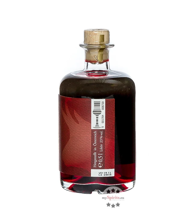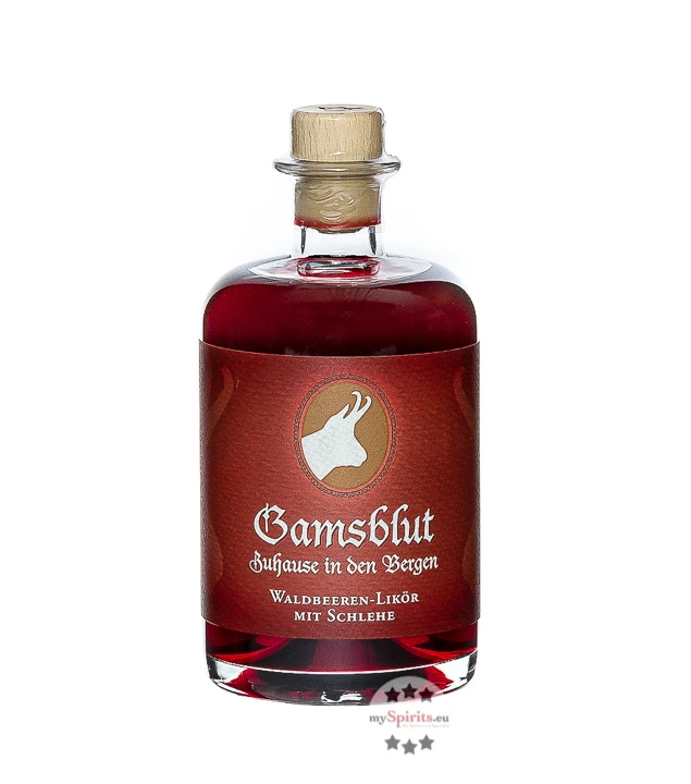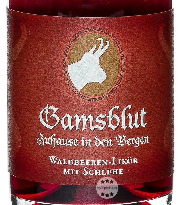 Das „Gamsblut“ ist zwar tiefrot, stammt aber natürlich nicht von den Gämsen, sondern von Waldbeeren und Schlehen, die in Wildbeeren-Destillat eingelegt werden. Eine schöne süße Fruchtigkeit wird begleitet von einer angenehm herben Note, die unverkennbar von der Frucht des Schlehdorns, der Schlehe, stammt. Insgesamt ein leckerer und milder Likör, der romantisches Berghütten-Flair nicht nur verspricht, sondern auch prompt liefert.