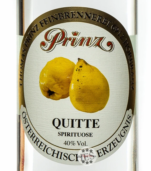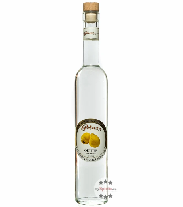 Goldgelbe Apfel- und Birnenquitten sind unverarbeitet nicht zum Verzehr geeignet, für die Destillation muss zunächst auch aufwendig die bittere Haut der Quitten abgerieben werden. Erst dann werden diese zum Schnaps weiterverarbeitet. Prinz Quittenschnaps besticht durch sein kräftiges Sortenaroma, ein Geschmack der zwischen würzigen Fruchtnoten und Zitrus-Bouquet changiert. Die ideale Trinktemperatur ist leicht gekühlt zwischen 11 und 14 °C.