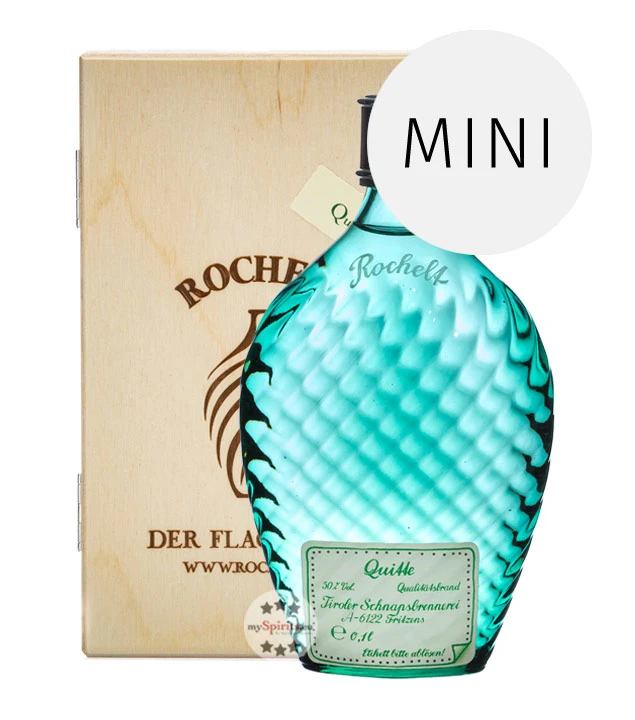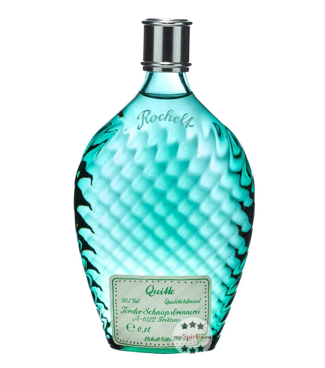 In Oberösterreich wachsen birnenförmige, filzig behaarte Quitten der Sorte Ronda zur vollendeten Reife. Erst dann werden sie – teilweise erst Ende Oktober – gepflückt und für die Verarbeitung zu Rochelt Quittenbrand verarbeitet. Der sonnengereifte Geschmack kommt schließlich auch im fertigen Obstbrand zum Tragen. In der Nase fein würzig mit deutlicher Fruchtnote und Nuancen von Kreuzkümmel und Senf, tritt im Geschmack sodann die exotische Fruchtnote feinwürzig hervor. Wie die größeren Abfüllungen in 0,7 und 0,35 Liter ist auch die kleine 0,1 Liter-Flasche in der typischen Zangenflaschenform aus smaragdgrünem Glas.