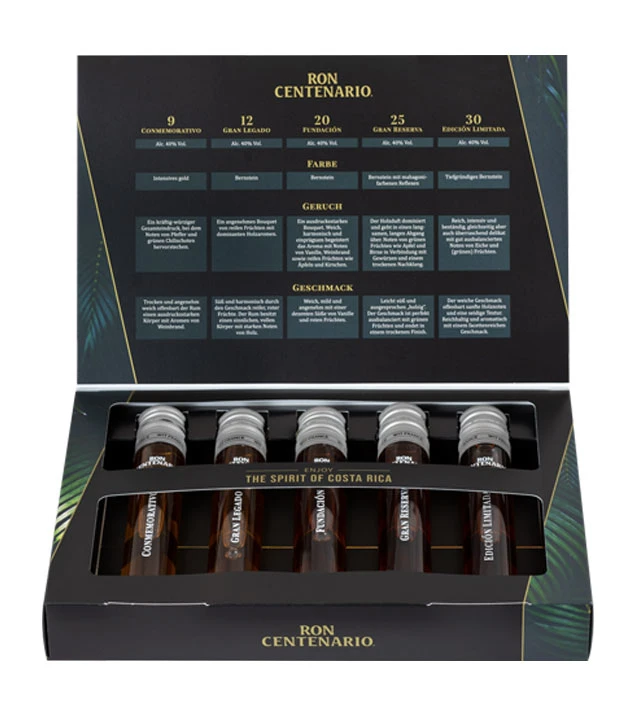 - Centenario Rum Tasting Set, 5 x 0,05 Liter, 40 % Vol.: