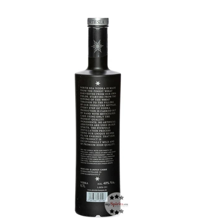 Der unvergleichlich milde Skiclub Kampen Wodka ist die Basis aller North Sea Spirituosen. Er wird aus feinstem Weizen aus eigenem Anbau destilliert. Von den Rohstoffen bis hin zur Handabfüllung der Flaschen werden bis heute alle Arbeitsschritte in sorgfältiger Handarbeit ausgeführt. Allein schon für das Design gab es sämtliche Auszeichnungen, darunter den Golden A’Design Award in der Kategorie Packaging. Dem hohen Qualitätsanspruch der Hersteller wird der Nordsee Wodka aber nicht nur äußerlich gerecht, sondern auch im Geschmack. Eine harmonische Reinheit und Klarheit erhält er durch die fünffache Destillation und die Verwendung eines Silberstaubfilters. Diese spezielle Technik wird selten angewendet und in Deutschland ist Skiclub Kampen eine der wenigen Marken, die sie beherrscht. Das Ergebnis ist überzeugend: Weiche, ausdrucksstarke Noten von Weizen verwöhnen Nase und Gaumen. Das ausbalancierte Spiel der Geschmacksfacetten spiegelt die Leidenschaft und das Know-how des North Sea Teams eindrücklich wider. Sein seidiges Finish rundet das Geschmackserlebnis wunderbar ab.