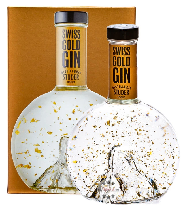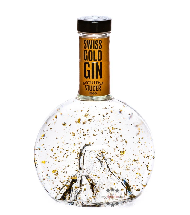 Entdecken Sie den hochwertigen Gin mit Blattgold-Glitter in der Flasche und kaufen Sie Studer Swiss Gold Gin bei mySpirits!