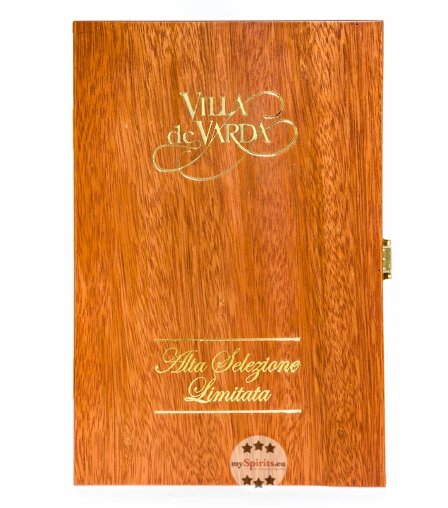 Der Stravecchia wird in einer besonders eleganten Flasche in einem edlen Kästchen aus Mahagoniholz geliefert. Der holzfassgelagerte Grappa wird im norditalienischen Städtchen Mezzolombardo von der Familiendestillerie Villa de Varda aus besten Trestern der Region gebrannt.